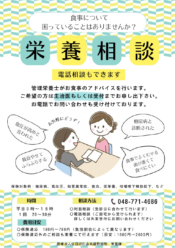 | 相談方法 | 対面相談 当院までご来院いただきます 電話相談 ご希望の連絡先にお電話をおかけします |